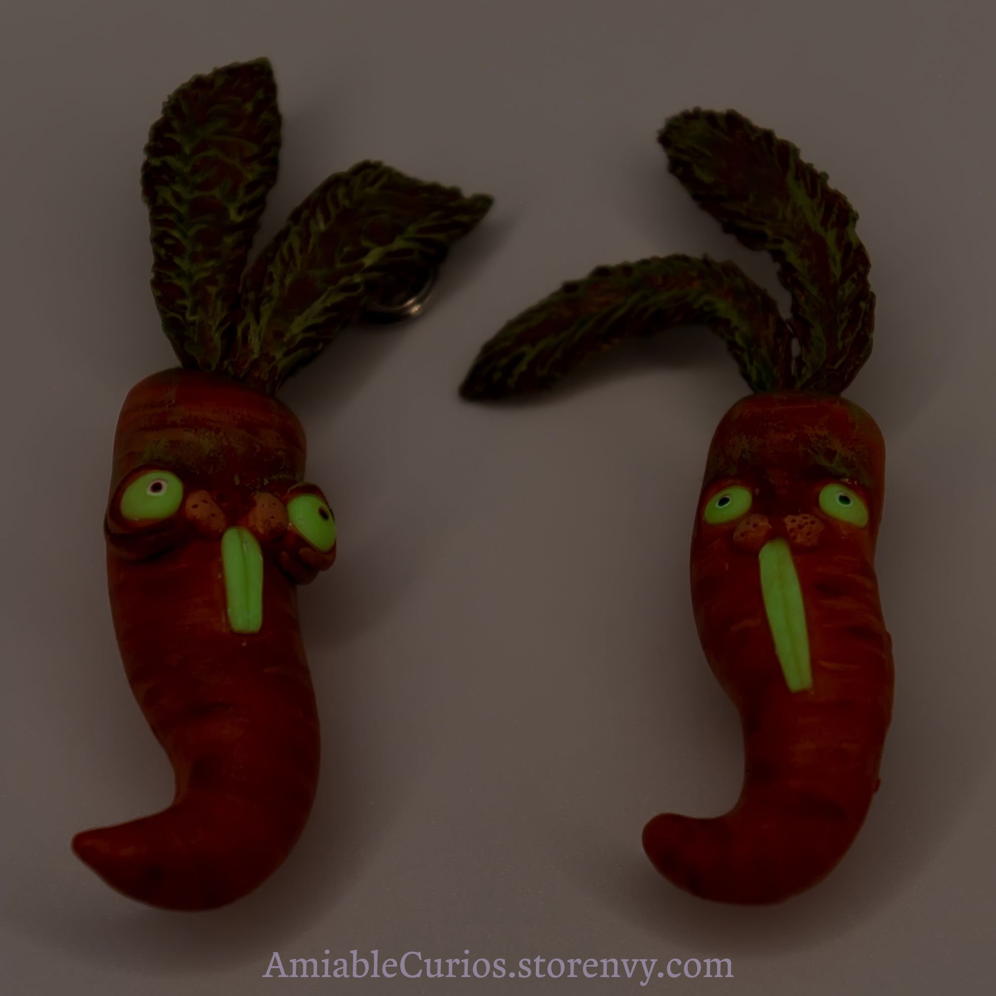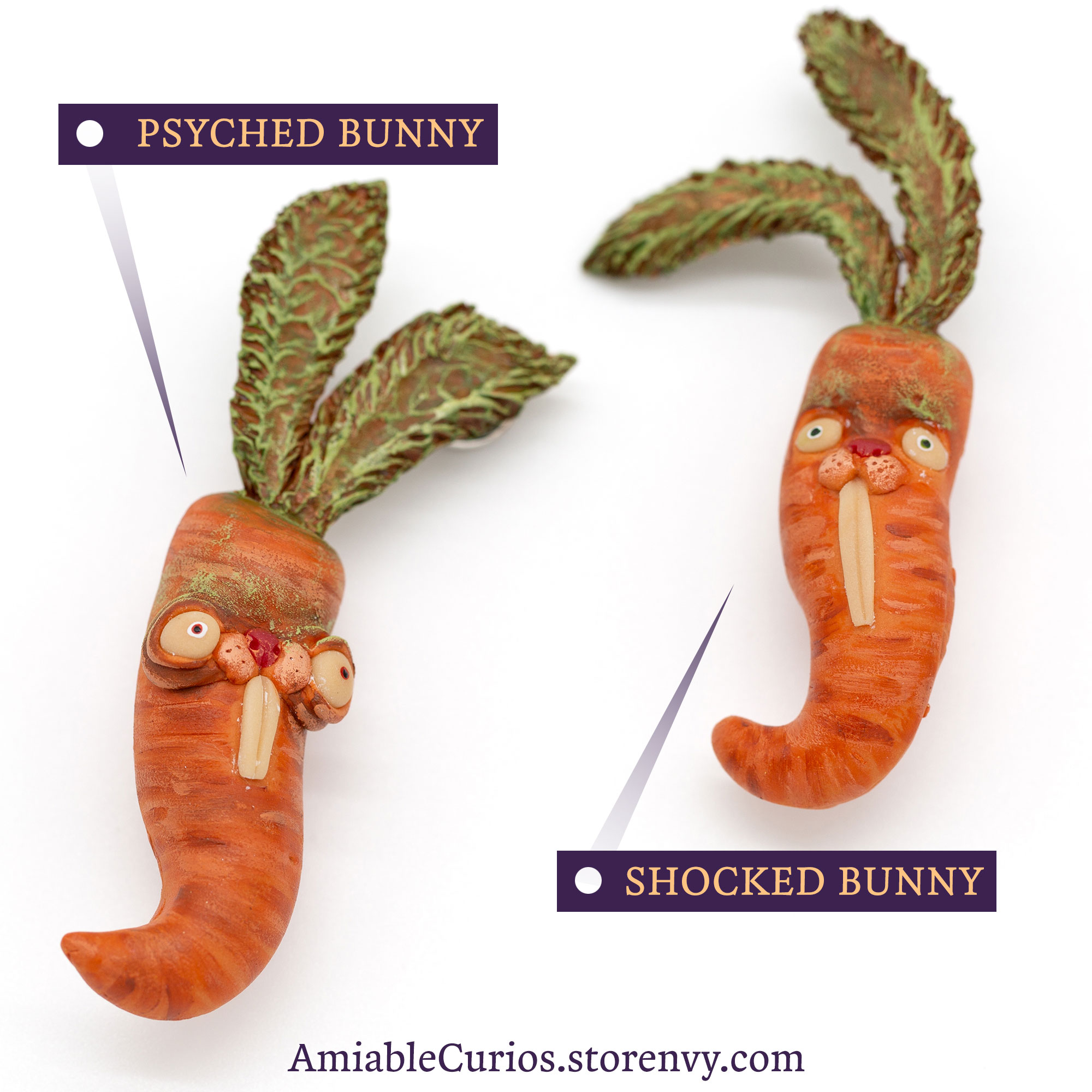 This is one of the pins in the Halloween 2023 series. Each year Oksana creates a Halloween or autumn themed limited edition jewelry. This year she created the Carrot Brothers. One of them is shocked and the other one is psyched! Which one would you pick?